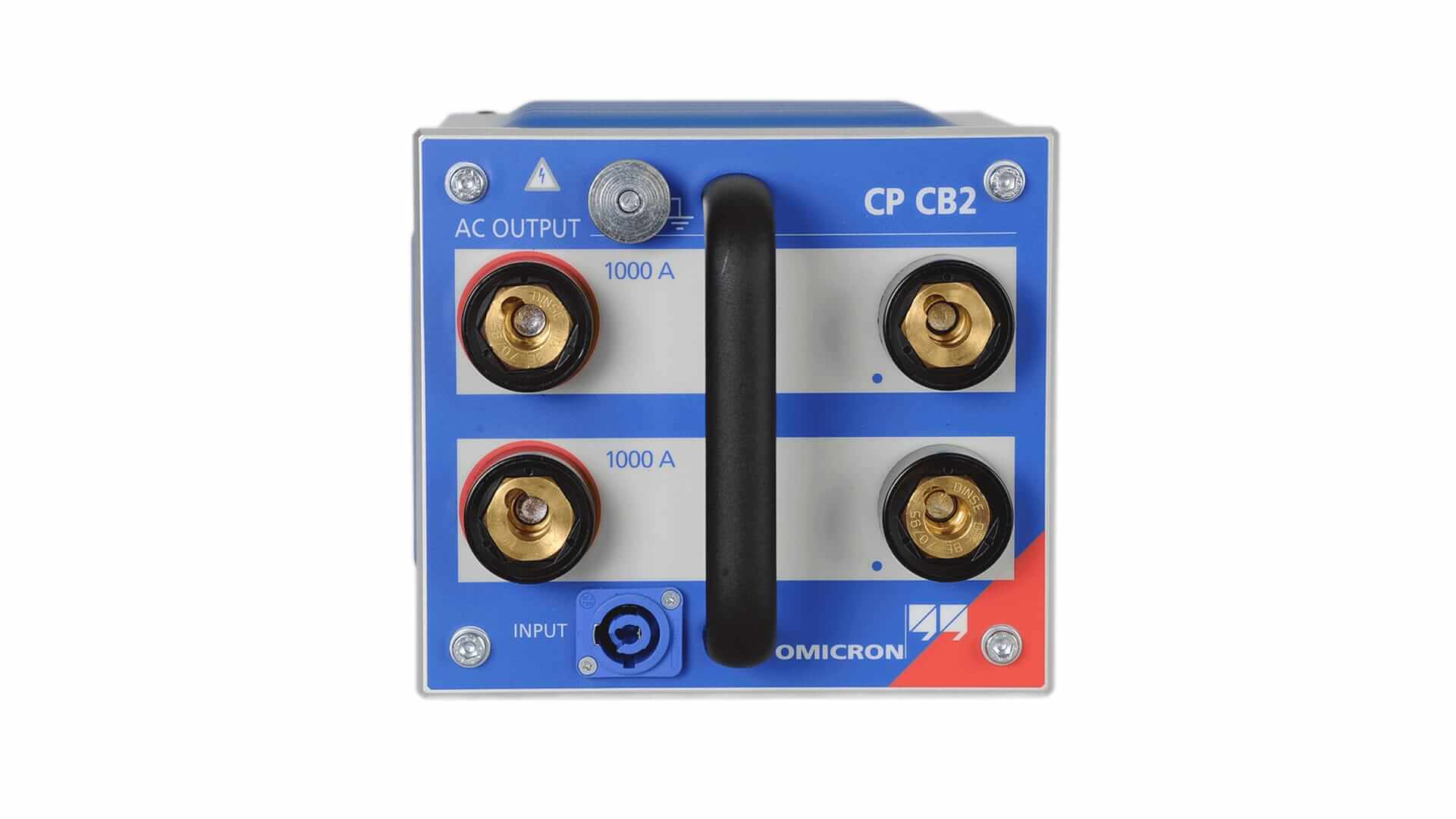 CP CB2 是 OMICRON 為 CPC 100 設計的 電流增強模組,可將 CPC 100 的輸出電流擴充至最高 2000 A,使其能應付更大電流需求的測試場景。它透過短高流纜線連接至母線,並由長控制線與 CPC 100 相連,以確保控制與量測的準確性與安全性。其適用於一次側電流注入、CT 測試、高電流保護電驛測試等應用。
